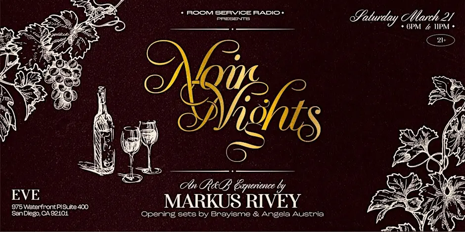 Set inside EVE’s indoor–outdoor space with sweeping views of San Diego Bay, the night brings together a stylish crowd for a curated soundtrack of 90s and 2000s R&B, smooth modern R&B, and soulful edits.